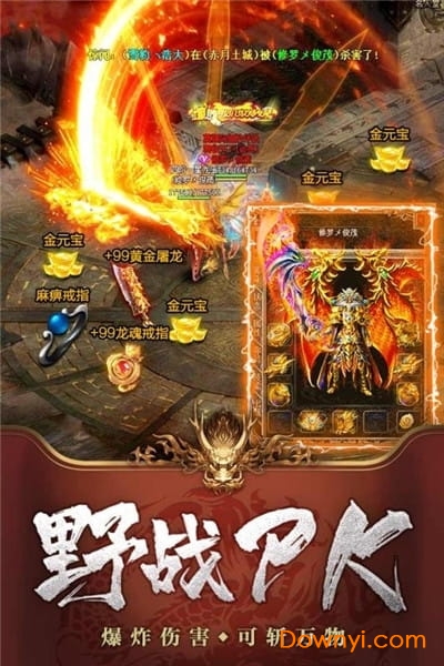 全自由的野外战斗,玩家可以pk爆装收获强大战力;