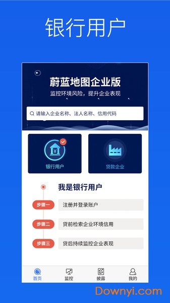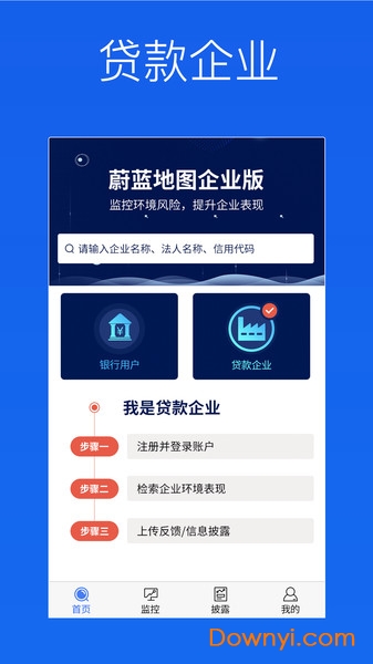 蔚蓝企业版是针对b端用户提供的行业应用解决方案,可以让用户通过选择相应的角色进行企业查询,查看企业详细信息,针对企业监管记录进行信息披露等功能,在个人中心可以进行信息的基本设置。