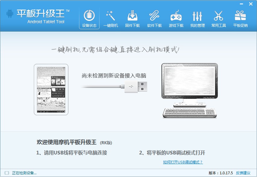 安卓平板电脑刷机软件,您无需专业知识,只需一键即可完成刷机操作,让您的平台电脑快速升级。软件可以智能安装设备的驱动程序,可以一刷机,一键备份操作,可以自动识别固软件类型,支持官方固件rom和磨叽网固件rom,免费在线下载。另外官方还提供了一些应用程序和游戏供下载。