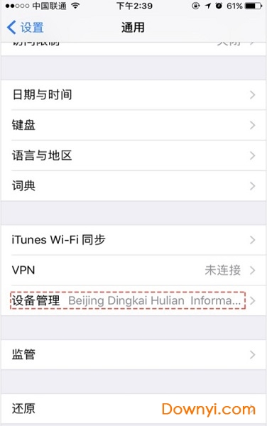 3、依次打开设置→通用→设置管理(或描述文件)