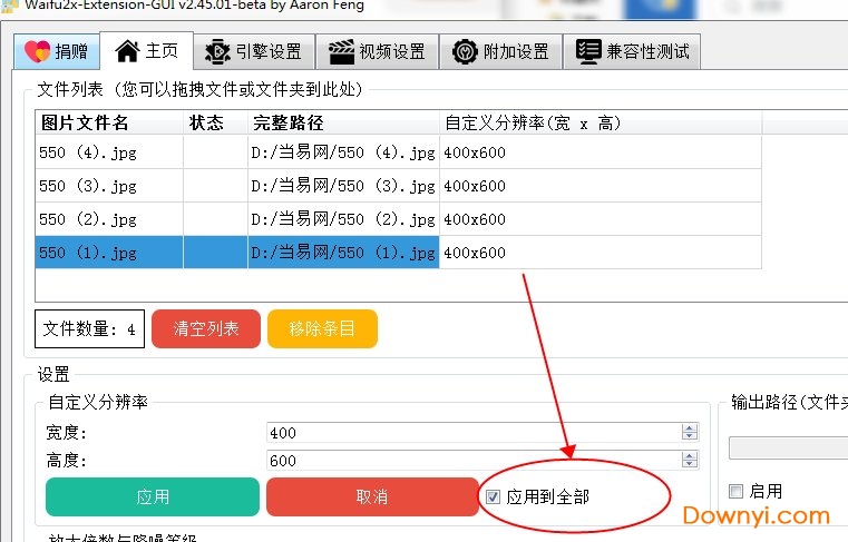 4.这里勾选应用到全部,就不用一个个的点应用了。