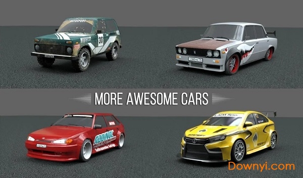2、伏尔加牌车,莫斯科牌车,瓦斯2106, 拉达牌车,瓦斯2114, 田地 - 开各种各样俄国牌的车,每个车有6到10种颜色和贴纸,共车车库有43种车,其中也有很有趣的,比如;嬉皮拉达牌车和瓦斯2106警车,爱出众的游戏者也可以降低自己的车。