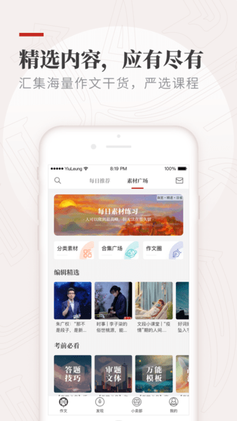 素材、范文、技法……科学分类,高效积累。而且紧贴热点,每天个性化推送你一直苦苦寻觅的句子、时评、人物素材等内容。
