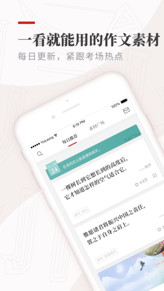 3、app编辑团队将每天为你推送三句精心挑选的高考作文素材。