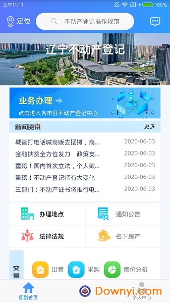 辽宁不动产登记app设有新闻资讯、通知公告、法律法规、办事指南、直接预约、在线受理、预审预约、进度查询、建议投诉等功能。用户通过应用程序下载、实名注册、登录app后,可以浏览全省不动产机构发布的最新消息,了解全省不动产大事记,掌握全省不动产最新动态等。
