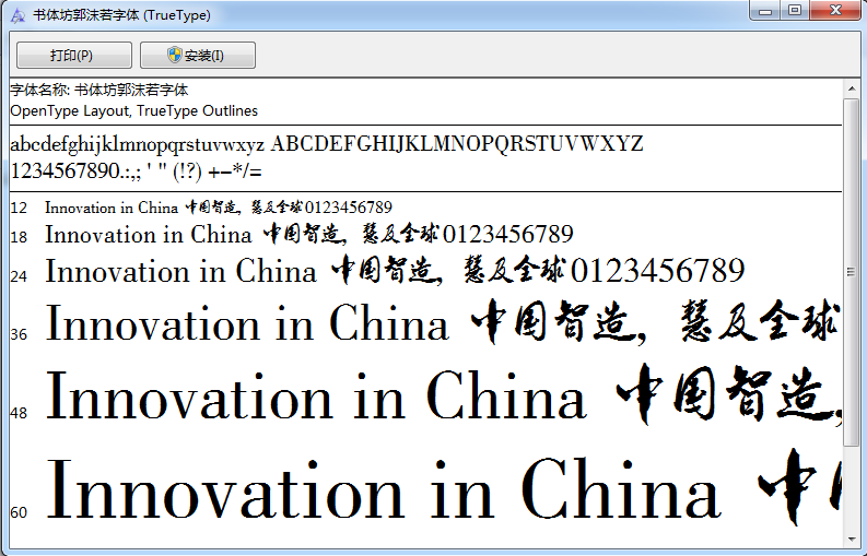 解压缩字体包,得到字体.TTF文件,直接双击,在弹出的窗口,点击安装即可;或者,选中字体文件,鼠标右键选中安装;