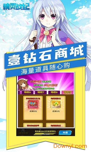 精灵战纪送千元真充版是玩家登录就送玩家价值千元充值的福利游戏,游戏的商城之中所有的物品都只卖一钻石,开局还送百抽,让给玩家在游戏中爽翻天,非常多的游戏福利快来领取吧!