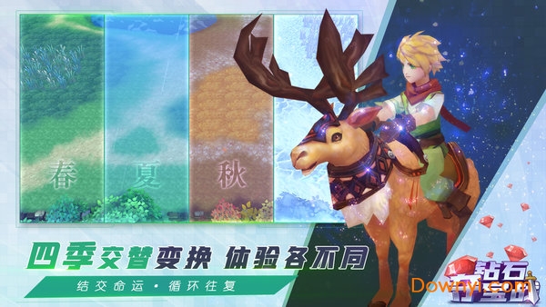 场景中四季交替进行,冬季下雪打滑,秋季刮风,夏季下雨,春季复苏。