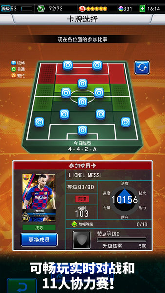 2、游戏中阵容类型多样,策略布阵自由选择,玩家可以自己选择喜欢的足球理念来打造自己的球队阵型哦!