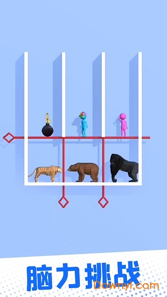 爱的魔力别针领红包游戏是类似于别针大师的抽别针手游,玩家需要帮助被关在兽笼之中的情侣逃离危险的野兽,拔出别针让情侣团聚并远离野兽,充满益智玩法的游戏玩家可以随时进行闯关。