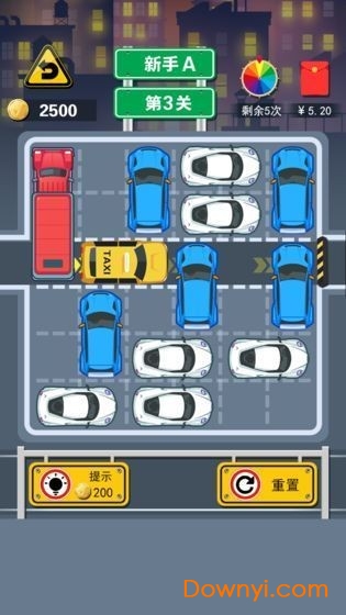 完成简单关卡所有挑战,后续道路维修中的停车场自动解锁,感受不一样的华容道玩法。