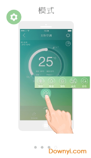 1、空调控制包括设定温度、设置模式、设置风速、设置定时、设置睡眠等实用性的功能。