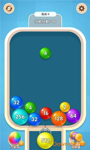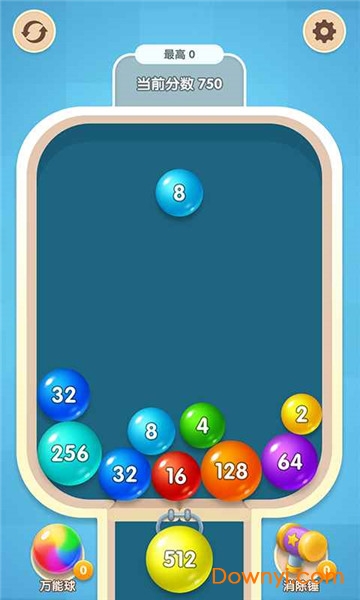 动动手指点击屏幕让小球落下,相同数字和颜色的小球就会合成新的小球,轻轻松松就能过关。快来看看你能合成多少数字吧!