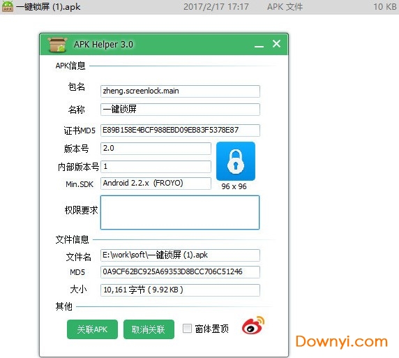 以安卓软件的一键锁屏为例,看获取到的信息如下: