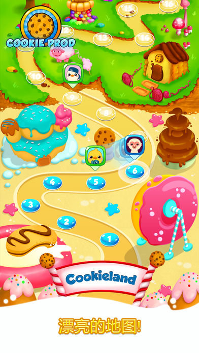 -完全新的饼干国地图,在这里你可以升级还有查看你朋友的位置。完成所有的任务,击败他们