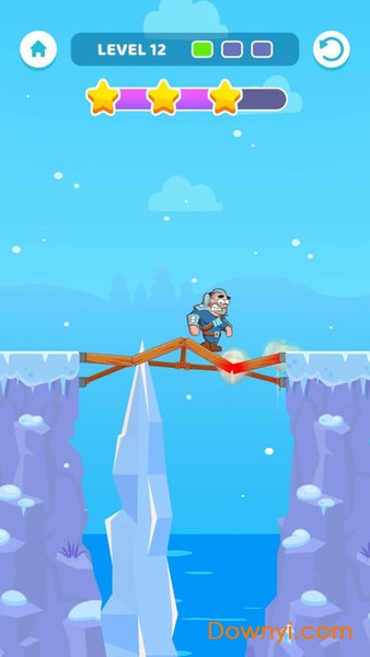 玩家在游戏中通过点击屏幕来将桥梁进行固定这样你的角色才能更加安全的完成挑战,帮助角色成功的收集宝藏,丰富的场景设计让你感到非常的刺激,在这个悬崖峭壁的场景中进行挑战,建造一个桥梁,海量的关卡在等你前来挑战,喜欢的快来体验吧。