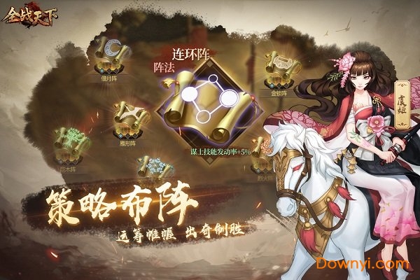 这是一款集结了历史上各个时代英雄豪杰的战争策略游戏,真实重现了乱世纷争,群雄逐鹿天下的宏大场面。千古英雄,齐聚一堂,人类群星闪耀时!嬴政,白起,刘邦,项羽,成吉思汗等历史神话人物,均能在这款游戏中成为你的麾下战将,助你驰骋天下。