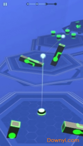 金属风的3D画面带来相当强的未来机械感,玩家需要操控一个白色圆球,点击屏幕穿过眼前的障碍物,每个障碍物都会不停的移动,游戏关卡具有随机性,每次重新开始都是不同的障碍通道,完全没有漏洞可钻,每次都是全新的开始,不断的失败重来,游戏十分魔性,让你有种炫迈的快感,根本停不下来