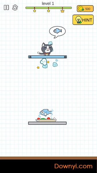 3,绘制直线和纹理线,削减切割板,切片形状,并用新鲜的鱼喂养猫!你需要点击或交换形状来切片,快乐切割游戏帮助那些可爱的猫解决难题