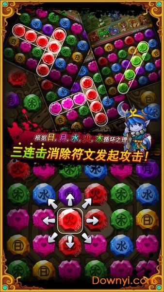 3.和传统三消“移动后如无法消除”就不让移动的规则,在这里是不存在的.所以你可以通过多次移动,将同色符文预先移到一起。