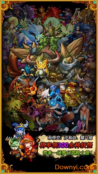 休闲与角色扮演游戏的巧妙相结合,包含45个剧情战场,多达150余个战场, 以孙悟空、猪八戒、沙和尚为首的300余种西游记妖怪将会一一登场,攻击型、回复型、增益型等160余种技能及130种以上的主将技强化整队实力。无穷乐趣。