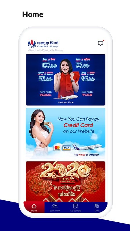 -获取优惠的票价信息:跟随柬埔寨航空全新的城市向导飞往未知的目的地,通过柬埔寨航空APP获取到您喜欢目的地的优惠票价信息,与您的家人或朋友分享,规划美好的旅程。