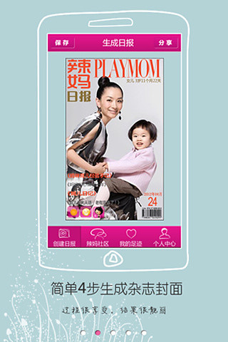 《辣妈日报》是一款android平台的家庭用户记录工具。用户在使用过程中,通过创建当天日报,选择一些如:天气、当时心情、宝宝状态等基本元素,然后上传照片选择自己喜欢并与照片相匹配的模板,以选择或者编写的方式记录当日的一些情况,即可生成一张个性化的日报并实现自分享及自运营功能。让您方便、有趣、独特地记录自己和孩子的美丽人生。每天一张我的报! 过程很享受,结果很靓丽!