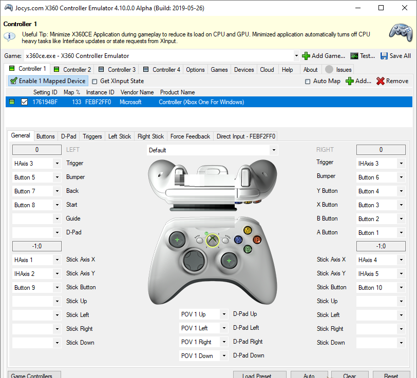 2、解压缩下载的ZIP文件并启动x360ce.exe;