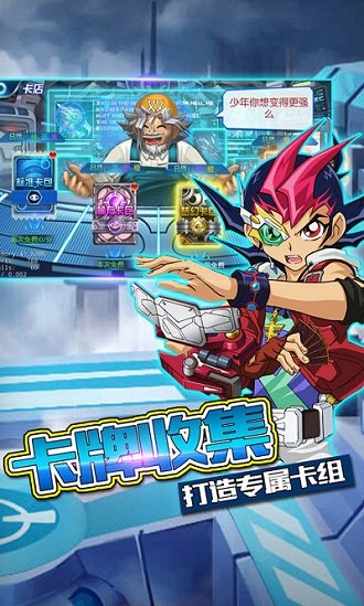 以《游戏王》动漫剧情为蓝本改编,王样、水母、蟹哥、教主、番茄等历代主角牵手出镜,黑魔导少女、天空龙、翼神龙、尤贝尔等卡牌角色联手出战,唤醒内心童年记忆!