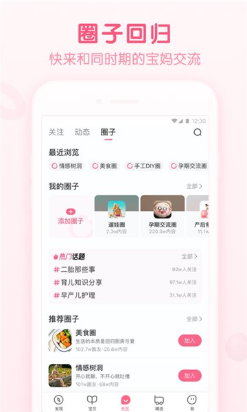 1、圈子回归,快来和同时期宝妈交流
