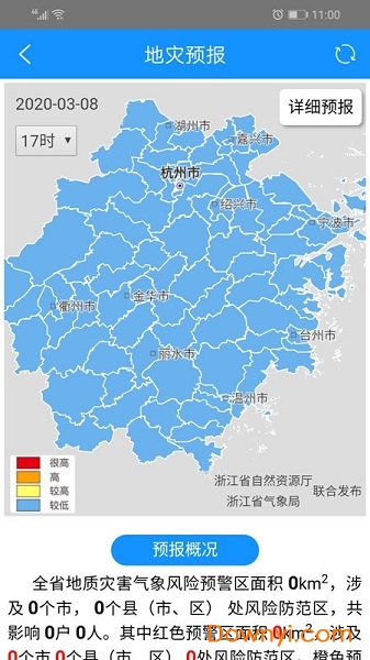 地灾智防手机版为你提供了实时的自然灾害检测,你可以看到浙江全省的情况。软件中通过使用地形图来更好的展示灾害的位置,无论是应急救灾还是进行日常的检查都是非常实用的。对于自然灾害重在早发现进行预防,有了它更加的方便了!