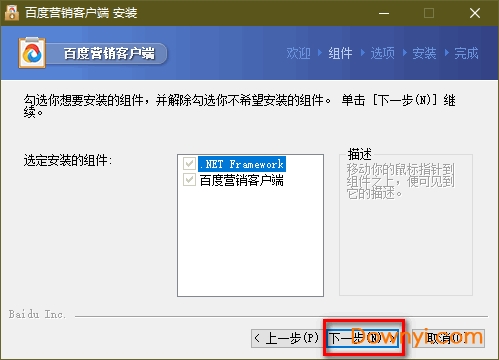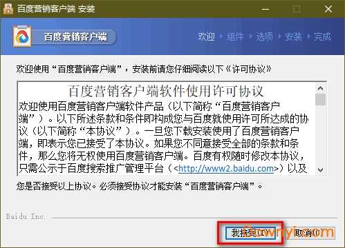1、在当易网下载百度营销客户端,之后双击文件“baiduyingxiaokehuduan_v6.2_downyi.com.exe”开始安装: