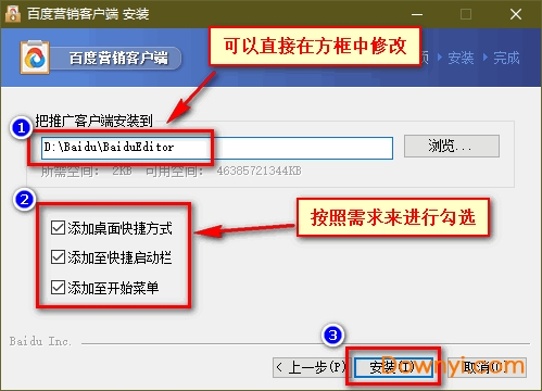 5、按照下图所示来进行设置安装路径,设置完成后点击“安装”: