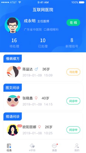 线上接诊:为患者提供在线的图文、视语线上问诊服务