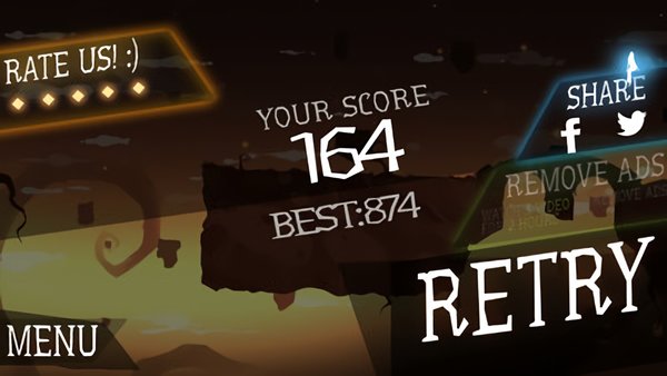 2、游戏中断壁的长短和高低都是随机的,这也是游戏的难点所在。