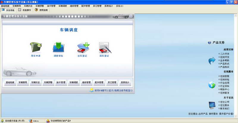 宏达车辆管理系统是一款功能强大、专业实用的车辆管理软件,此款软件能够为用户提供基础档案、车辆费用、车辆状态、车辆预警等实用功能。软件方便简单,非常适合中小型企业物业管理使用,需要的话可以来下载使用。