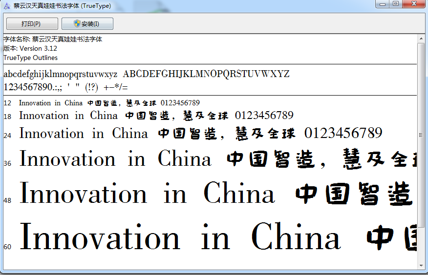 蔡云汉天真娃娃书法字体根据王憨山先生书体和古碑格调设计,带有浓郁的书法气息,字形类似于娃娃体,效果非常的好,很多的海报设计,艺术设计上经常使用这款字体,喜欢的用户可以来下载试用安装,感受书法的气息!