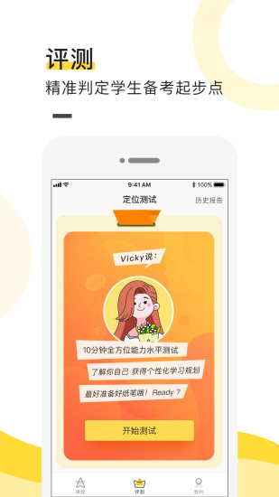 提供了全套的模考试题,可在线进行模拟考试,模考过程中退出可再次进入继续考试。考试后会生成智能报告,将能力点一一点到,进行针对性提分练习,每一道题都有权威的解析,让学习者明白错在了哪里。口语模拟考试环境,一代声优,陪你练口语。