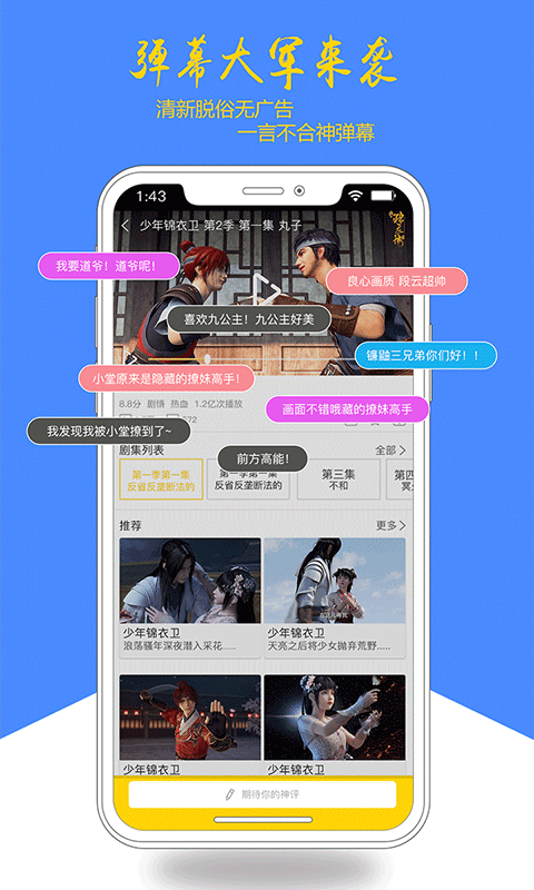 1、清新脱俗无广告,一言不合神弹幕。和大家一起分享看视频的心得,体验实时互动。