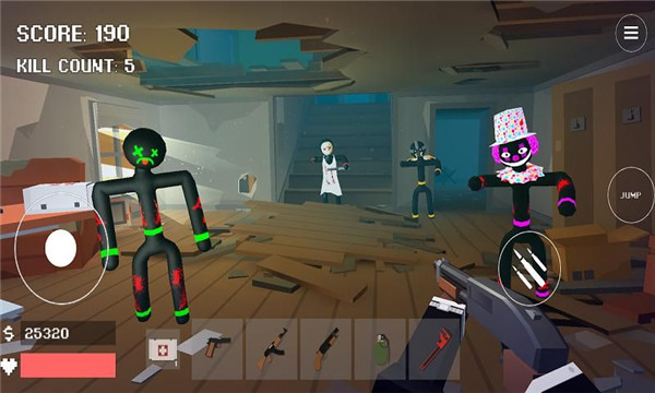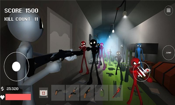 游戏中你会遇到各种各样的僵尸火柴人,他们试图去杀死你