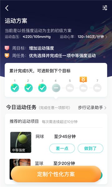 提供符合个人日常习惯的改善方案定制和推荐,分阶段逐级改善,更易坚持。