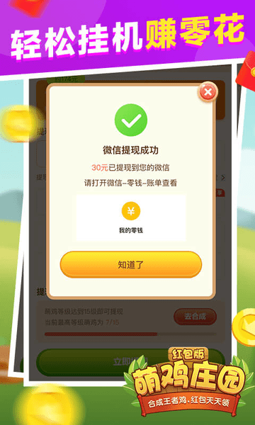 2.多种不同品种的小鸡等着你去合成,可以领取红包奖励