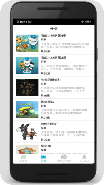 有声故事的分类清楚,根据类型即可查找到需要的故事;