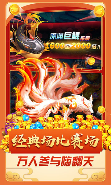 2021巅峰巨制,经典街机捕鱼全新版本震撼上线!捕鱼玩法大升级!真人同台竞技,精美3d画面。千倍boss、万倍炮台、多种导弹爆率爆表,助您一秒成壕!更有海量奖券等你兑换。现在马上加入我们,开启不一样的捕鱼人生~