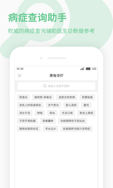2.病症查询:辅助诊疗病症查询,为医生诊断做病症参考。