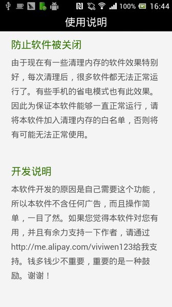 由于现在有一些清理内存的软件效果特别好,每次清理后,很多软件都无法正常运行了。有些常运行,请将本软件加入清理内存的白名单,否则将有可能无法正常使用。