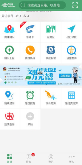 【掌上高速,智慧出行】同步山东高速监控调度中心路况信息数据,权威路况24小时实时发布。监控全覆盖,在手机上就能查看实时监控截图,真正做到有图有真相。实时了解出行路段事故、拥堵、施工、收费站封闭等路况信息。