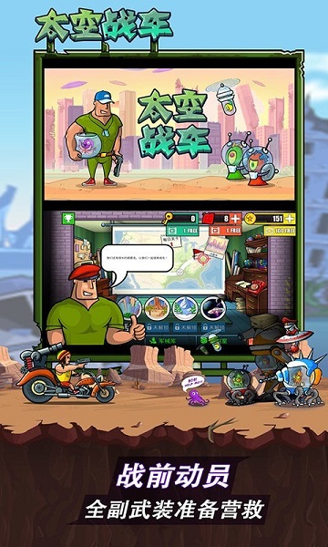 太空战车游戏是十分不错的休闲闯关射击,在不同的场景中与外星人对战,拿起战斗武器,准确的将在各处的外星人全部击杀,在对战的时候一定要谨慎,外星人的战斗武器威力是很强的。