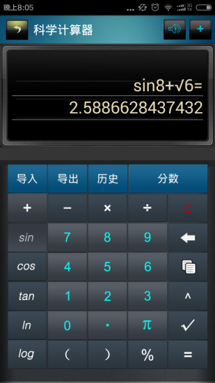 分数高级计算器app的运算能力比一般手机自带的计算器的运算能力要强上不少,用户不仅可以进行简单的四则运算,还可以在应用上进行一些高级运算,例如三角函数、对数函数等等。欢迎上当易网下载并体验!