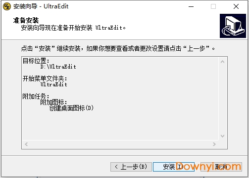 3、选择ultraedit编辑器快捷方式存放位置,选择完成后点击【下一步】。